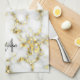 Schwarz-Weiß-Marmor-Gold-Funkelflake Monogram Geschirrtuch