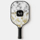 Schwarz-Weiß-Marmor-Gold-Funkelflake Monogram Pickleball Schläger