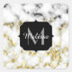 Schwarz-Weiß-Marmor-Gold-Funkelflake Monogram Quadratischer Aufkleber