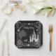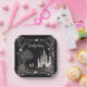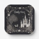 Schwarz-Weiß-Messe Schloss mit Pferd Pappteller