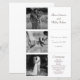 Stellen Sie Ihren Hochzeitstag mit diesem anspruchsvollen und herzlichen Foto Collage Hochzeitsprogramm vor. Dieses Design besticht durch eine zeitgenössische Gestaltung, die die Eleganz klassischer Hochzeitskunst mit der modernen Touch persönlicher Fotografie verbindet. Das links Paneel zeigt drei sorgfältig arrangierte Foto-Slots, die es Paaren ermöglichen, bedeutsame und wertvolle Momente zu erleben. Das rechte Panel behält ein minimalistisches und elegantes Textdesign bei, mit Namen in einem zarten Script-Schriftart und wesentlichen Details in einer schlanken, serifenlosen Schrift. Die neutrale Schwarz-Weiß-Farbpalette besticht durch zeitlose Eleganz und ergänzt jedes Hochzeitsthema von klassisch bis modern. Diese Einladung ist ideal für Paare, die eine einzigartige und persönliche Art suchen, ihre Hochzeitsdetails zu teilen und dabei eine Hauch von schlichter Eleganz behalten. Hinweis: Ersetzen Sie das Foto durch Ihre Fotos aus der Vorhochzeit Foto Shooting. M004