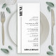 Diese minimalistische, elegante und schlichte Hochzeitskarte zeigt ein sauberes und modernes typografisches Design. Die Karte ist wunderschön in einer unberührten, weißen Farbe gefertigt, wobei eine schmale vertikale Linie entlang der links Seite verläuft. Die clevere Verwendung des Wortes "MENU" erzeugt eine Illusion, die sich bis zum oberen Ende der Karte erstreckt und eine Touch der Eleganz hinzufügt. Diese Karte ist nicht nur einfach, sondern bietet auch alle nötigen Informationen über die köstlichen Geschirr und die Namen der wunderschönen Ehepaare, um allen Gästen ein unvergessliches kulinarisches Erlebnis zu bieten.