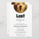 Diese Schwarz-Weiß-Einladung mit Gold Letzte Disco Bachelorette Wochenende verströmt einen auffallenden Minimalismus, der mühelos elegant ist. Der klassische Kontrast von Schwarz-Weiß-Sets, die Bühne für eine zeitlose Ästhetik, während die schimmernde Präsenz eines goldenen Diskoball am oberen Rand das Design mit einer Touch von Glamour und Aufregung. Die Kombination dieser Elemente schafft eine Einladung, die zugleich raffiniert und spielerisch ist und perfekt das Wesen einer unvergesslichen Bachelorette-Feier mit dem Geist der Disco einfängt.