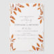 Dieses elegante und zugleich naturbelassene Vellum-Overlay-Einladungs-Programm besticht durch einen klaren, weißen Hintergrund mit klassischem schwarzem Text und schafft einen zeitlosen Ton für Ihren besonderen Tag. Die markanten Rost Herbstblätter, oben und unten gerahmt, verleihen Wärme und rustikalen Charme und kontrastieren wunderbar mit dem minimalistischen Design. Das durchsichtige Vellum-Overlay steigert die Raffinesse der Einladung und ist somit eine ideale Wahl für Paare, die eine raffinierte, aber naturlich inspirierte Hochzeitseinladung suchen.