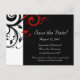 Feines und auffallendes modernes Schwarz-Hochzeit- und Schreibwaren-Set mit roten Akzenten, mit zartem, wirlem Blätterhintergrund. Mit Ihren Hochzeitsdetails können Sie Ihre Hochzeitskollektion online gestalten: Einladungen, RSVP-Karten, Save the Dates, Magnete, Stickers, Table Platzkarten, Wedding Planning and Foto Album Binders and More!