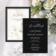Eine formale Schwarz-Weiß mit UAWG Hochzeit Einladung für Ihren besonderen Tag. Diese Einladung wurde auf einer schwarzen Vorderseite mit weißem Text konzipiert und beinhaltet: die Namen der Braut und des Bräutigams, das Hochzeitdatum, die Uhrzeit, den Ort, die Anschrift und die Empfang-Details. Der umgekehrte Text enthält Ihre UAWG Details auf einem weichen, blühenden Hintergrund und schwarzen Rahmen. Zum Personalisieren fügen Sie einfach Ihren Veranstaltungstext in unsere einfache Vorlage ein und ersetzen das Beispiel. Schauen Sie sich unbedingt die kompletten Schwarz/Weiß mit UAWG Wedding Sammlungen an, um passende Karten und Accessoires zu finden.
