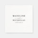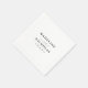 Eine raffinierte, schwarz-weiße Hochzeitsserviette mit minimalistischem Design mit den Namen des Ehepaares und dem Hochzeitsdatum in einem zeitlosen Serif- und Script-Schriftart. Diese elegante und moderne Serviette eignet sich hervorragend für Hochzeitsfeiern, Proben, Brautpartys und Verlobungsfeiern. Mit seiner gepflegten Typografie und dem klassischen Layout fügt es jedem formellen oder zeitgenössischen Hochzeitsthema eine raffinierte Touch hinzu.