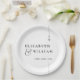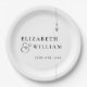 Diese minimalistisch-eleganten monogramm Hochzeitspapier-Teller können mit Ihren Details in der modernen Typografie auf schwarz-weißem Hintergrund personalisiert werden. Entwickelt von Thisisnotme©