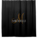 Eleganter schwarzer Monogramm-Name weiße Schrift Duschvorhang ,Fügen Sie Ihrem Badezimmer mit diesem eleganten schwarzen Monogramm-Namen-Duschvorhang mit einem atemberaubenden weißen Schriftdesign eine raffinierte, moderne Note hinzu. Der tiefe schwarze Hintergrund schafft eine kühne, anspruchsvolle Leinwand, während die fließende weiße Schrift einen weichen, eleganten Kontrast hinzufügt, der Ihren Raum sofort aufwertet.