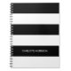Moderne Streifen Schwarzweißmuster individuelle Name Monogramm Notebook