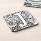 Schwarz-Weiß-Monogramm-Tinte im Tattoo-Style, Blum Getränkeuntersetzer