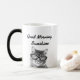 Schwarz-Weiß gute Morgenbotschaft 11oz Katz Tasse. Funny magic cat Tasse | Kätzchen tragen Nerdgläser mit personalisiertem Zitat dh Guten Morgen Sonnenschein. Niedliche Geschenkidee für Katzenliebhaber / Besitzer / Person. Schwarz-Weiß-Foto mit Skripttypografie. Auch als große übergroße 15oz Morphing Tasse und große Reise zu Tasse. Spaß für Zuhause oder Büro. Fügen Sie optional Ihr eigenes Foto hinzu. Farbverändernde wärmeempfindliche Gestaltung.