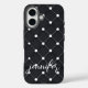 Dieses individuell anpassbare iPhone 16 Gehäuse bietet ein elegantes und luxuriöses Aussehen für diejenigen, die sich um ihr Bild kümmern. Es bietet ein schwarz-weiß gepunktetes Muster dominiert. Ändern Sie einfach den Text mit dem Namen Ihres Freundes und erstellen Sie das perfekte Geschenk für Ihren Freund.