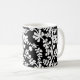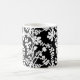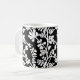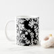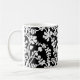 Schwarz-Weiß-Wiederholungsmuster mit feinen, weißen Farn-Silhouetten auf schwarzem Hintergrund. Dieses Design ist ideal, um jedem Produkt eine Touch von Natur und Eleganz hinzuzufügen.