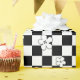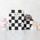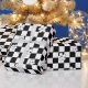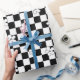 Trendy karierte Verpackungspapier mit schwarz-weißem Schachbrett und niedlichen Blume.