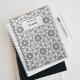 Schwarz-Weiß-Repetativmuster mit anpassbarem Namen auf einem Notebook. Das ist ein Notizbuch für jeden Gebrauch, und das Notizbuch mit seinem Sehmuster ist leicht zu finden unter allen anderen. Füllen Sie es mit unendlichen Ideen vom Klassenzimmer bis zum Konferenzraum. Dies ist eine Arbeit und Studie wesentlich. Klassische, moderne und elegante Organisation.