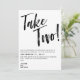 Charming verschoben Hochzeit rettete die neue Dattelkarte in Weiß mit schwarzem Text. Nimm Zwei! ist in einem Pinselskript über der Kartenspitze geschrieben. Schreiben Sie Ihr neues Hochzeitstermin und weitere Informationen in einem modernen Schriftart.