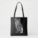 Klassische schwarz-weiße Tasche mit detaillierter Owl Abbildung.