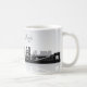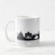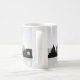 Diese Tasse zeigt eine Schwarz-Weiß-Grafik der Pariser Skyline mit anpassbarem "Paris"-Text.