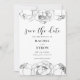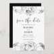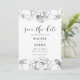 Ein elegantes Schwarz-Weiß-Design mit wunderschönen Blume, ideal für eine schicke und moderne Hochzeit. Vollständig anpassbar: Sie können die Textfarbe oder die Blume leicht ändern, um Ihren Geschmack zu Anzug zu bringen.