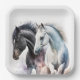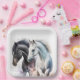 Schwarz-Weiß-Pferde in Wasserfarbe Pappteller