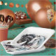 Geburtstagspapier-Teller mit einem schwarz-weißen Pferd, das zusammen hängt. Illustriert mit Aquarellen.