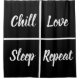 Große schwarze Quadrate und der Text: Chill, Liebe, schlafen, wiederholen. Verlass es so, wie es ist, oder füge deine eigenen lustigen Worte hinzu.