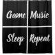 Große schwarze Quadrate und der Text: Spiel, Musik, Schlaf, wiederholen. Verlass es so, wie es ist, oder füge deine eigenen lustigen Worte hinzu.