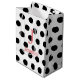 Geben Sie Ihr Geschenk in Stil und mit einem individuelle Name und Nachricht. Schwarze Polka Punkte mit weißem Hintergrund. Wählen Sie eine Nachricht zu schreiben oder verwenden Sie ein Monogramm in rosa.