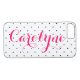 Stilvolle iPhone-Gehäuse mit schwarz-weißem Polka-Dots-Muster und heißrosa moderner Kalligraphie. Diese individuell anpassbare Elektronik wird als Geschenk perfekt sein.
