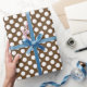 Braun-weiße Polka Dotverpackungspapier. Weiße Polka hat einen dunkelbraunen Hintergrund.