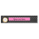 Schwarz-Weiß-Polka-Punktmuster. Weiße Polka-Punkte auf schwarz und in der Mitte gibt es eine heiß rosa Band, wo Sie Ihren Text hinzufügen können.