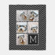 Schwarz-weiß-Quadrat-5-Fotoleitermonogramm Fleecedecke