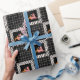 Schwarz-Weiß-Quadrat mit rosa und braunem Hund Geschenkpapier
