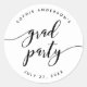 Abschluss Aufkleber mit den Worten "Grad Party" in einer entspannenden kursiven Schrift in schwarz auf weißem Hintergrund. Personalisieren Sie es, indem Sie den Platzhalter-Text ersetzen. Für weitere Optionen, wie zum Beispiel den Schriftart zu ändern und ihn zu verändern, erweitern Sie die /Contract-Kurve oder den Abstand zwischen den Buchstaben, klicken Sie auf die Schaltfläche "Anpassen". *Bitte beachten Sie, dass das Zazzle-Wasserzeichen, das in der Zoomvorschau angezeigt wird, NICHT auf dem gedruckten Endprodukt erscheint. © Rosewood and Citrus