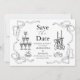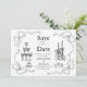 Schwarz-Weiß Retro Doodle Art Hochzeit Save The Date