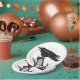 Mein originelles, urheberrechtlich geschütztes Design zeigt meinen Stift und meine Tinte, die von "Inky" gezeichnet wird, einem echten Rabe. Diese elegante und auffallende schwarz-weiße Platte kann auf dem Zweig mit einem Datum, Initialen, Monogramm, etc. in einer gotischen Schrift personalisiert werden. Ideal für jeden, der Lieben raubt oder kräht, oder zu Halloween. Originelles Kunstwerk & Design von Tuzi Williams.