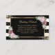 Elegante, schwarz-weiß gestreifte, blumengeschmückte Hochzeitssteg-Einsatzkarte mit rosafarbenen Blume und Grünpflanzen. Matching-Elemente verfügbar.