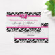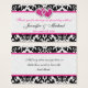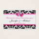 Dieses schwarz-weiße Damast Hochzeitsgeschenk-Tag hat ein Paar von PRINTED-Herzen mit rosa Glitzer und Juwelen auf ihm, dass die Hochzeitseinladung unten gezeigt. Falls Sie weitere passende Artikel benötigen, senden Sie bitte eine E-Mail an owlstudio@gmail.com.