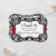 Stilvolle, elegante und schicke Klammer in schwarz-weißem Damast-Hintergrund-Design, mit rotem Band und weißem Rahmen. Der Stil eines niedlichen Mädchens. Alle Designs Copyright © CustomInvitesOnline.com