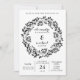 Dieses moderne rustikale Design besticht durch einen schwarzen botanischen Kranz auf weißem Hintergrund. Die Rückseite der Einladung ist ein koordinierendes weiches Grau. Einfach mit Ihren Hochzeitsinformationen personalisieren für einen trendigen, individuellen Look.
