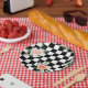 Schwarz-Weiß-Schachtel und Rosa-Rosa-Druck Pappteller