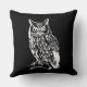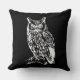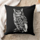 Klassisches Schwarz-Weiß Akzent Kissen mit detaillierter Owl Abbildung.