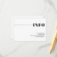 Die Hochzeitskarte zeichnet sich durch ein stilvolles und minimalistisches Typografie-Design aus, das das Wesen der Einfachheit in sich trägt. Die Farbkombination Schwarz/Weiß wird durch den weiße Raum ergänzt, der die glänzenden und sauberen Linien des Designs unterstreicht. Eine horizontale Linie oben auf der Karte fügt ein Element der Raffinesse hinzu, und das Wort "INFO" dehnt die Linie geschickt auf die rechte Seite aus. Auf der Rückseite der Karte befindet sich ein QR-Code, der den Gästen den Zugang zu allen wichtigen Hochzeitsinformationen ermöglicht.