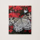 Schwarz-Weiß-Schmetterling auf roten Blume Puzzle