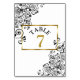 Schwarzweiß-extravagante Zierschrift Hochzeitskarte für Tischnummer