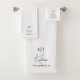 Ein wunderschönes Set schwarz-weißer Badetücher, die auf Ihren Namen und Ihre Monogramm angepasst werden können. Der Schriftart der Signatur ergänzt die Ästhetik des modernen serifenlosen Schriftartes. Ein ideales Design für Ihre Wohngestaltung.