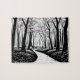 Schwarz-Weiß-Silhouette-Wald mit Lila Blätter Puzzle