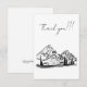 Dies ist eine Dankeskarte mit einer schwarz-weiß skizzierten Berg- und Tal-Landschaft mit einer Hütte und umliegenden Bäumen. Ich zeichne gerne Skizzen, besonders von Bergen! Diese hier vermittelt ein Gefühl von Ruhe und Stille, das in den hektischen Leben der Gesellschaft gesucht wird.
