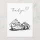 Diese Dankeskarte zeigt eine schwarz-weiße Skizze eines Berges und Tals mit einer Hütte und umliegenden Bäumen. Ich zeichne gerne Skizzen, besonders von Bergen! Diese hier vermittelt ein Gefühl von Ruhe und Stille, das in den hektischen Leben der Gesellschaft gesucht wird.